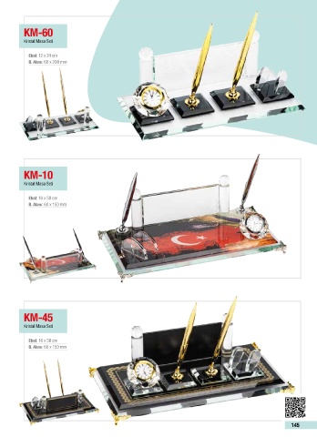 KM-60 Kristal Masa Seti Ebat: 12 x 24 cm B. Alanı: 60 x 200 mm KM-10 Kristal Masa Seti Ebat: 16 x 30 cm B. Alanı: 60 x 150 mm KM-45 Kristal Masa Seti Ebat: 16 x 30 cm B. Alanı: 60 x 150 mm 145