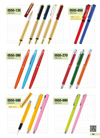 0555-135 0555-650 Roller Kalem Roller Kalem Baskı: Lazer ile gümüş markalama 0555-390 0555-270 Roller Kalem Roller Kalem 0555-590 0555-690 Roller Kalem Roller Kalem Gövde: Rubber 163
