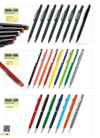 0555-335 Tükenmez Kalem Dokunmatik Baskı: Lazer ile tepe ranginde markalama 0555-260 Tükenmez Kalem Dokunmatik Gövde: İnce 0555-320 Tükenmez Kalem Dokunmatik 168
