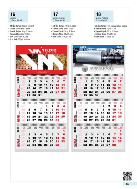 • Takvim Ebadı: 39,6 x 83 cm • Takvim Ebadı: 39,6 x 83 cm • Takvim Ebadı: 39,6 x 83 cm