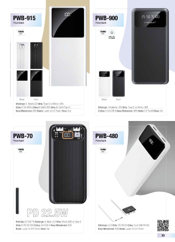 Hızlı Şarj: 22.5W PD Gösterge: 3. Nesil LCD Giriş: Micro USB ve Type C