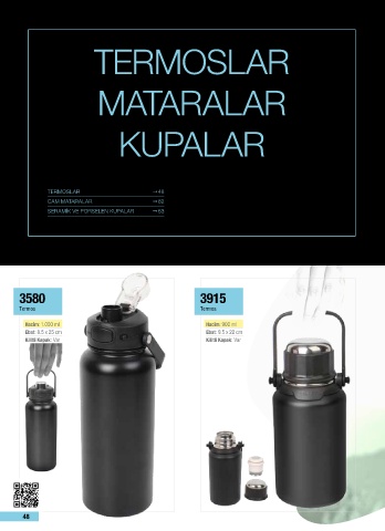 TERMOSLAR MATARALAR KUPALAR TERMOSLAR Y 48 CAM MATARALAR Y 62 SERAMIK VE PORSELEN KUPALAR Y 63 3580 3915 Termos Termos Hacim: 1.000 ml Hacim: 900 ml Ebat: 8.5 x 25 cm Ebat: 9.5 x 22 cm Kilitli Kapak: Var Kilitli Kapak: Var 48
