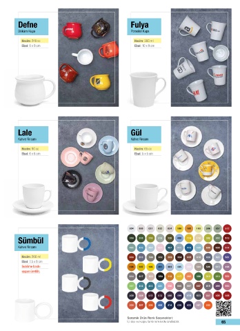 Içi dışı ve kulpu farklı renklerde üretilebilir. 65