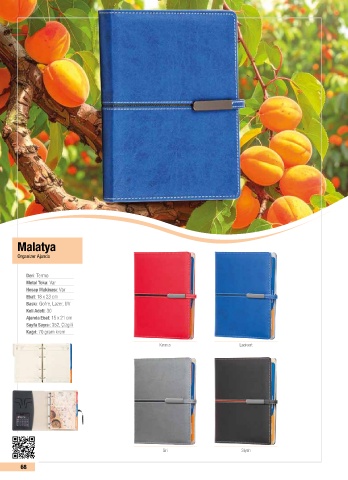 Malatya Organizer Ajanda Deri: Termo Metal Toka: Var Hesap Makinası: Var Ebat: 18 x 23 cm Baskı: Gofre, Lazer, UV Koli Adeti: 30 Ajanda Ebat: 15 x 21 cm Sayfa Sayısı: 352, Çizgili Kağıt: 70 gram krem Kırmızı Lacivert Gri Siyah 68