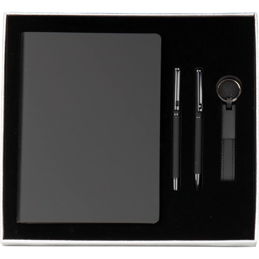 * 15 x 21 cm Defter (Sarıyer) * Roller Metal Kalem ve Tükenmez Kalem (0555-480 / 0555-490) * Deri ve Metal Anahtarlık (AN-5185) * Kutu: Cilt Bezi